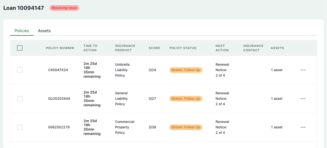 Policy Versions: Each policy version is identified by a version number (e.g., V1, V2) and a start and end date (e.g., V1 03/01/2024 - 03/01/2025).