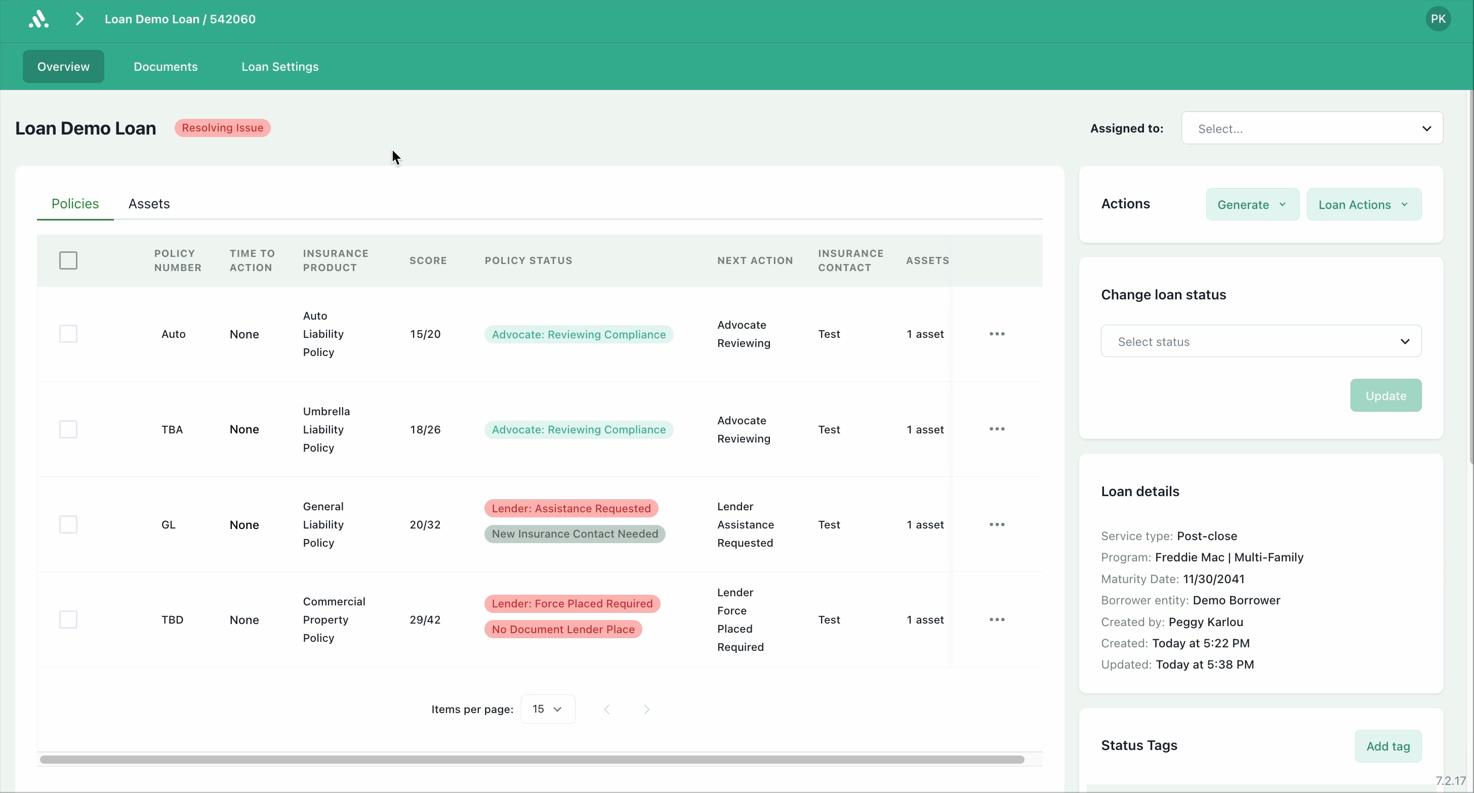 If multiple Policies have the same Peril enabled for an Asset, the Force Placed status will override any other statuses (e.g., compliant, pending, or missing coverage).