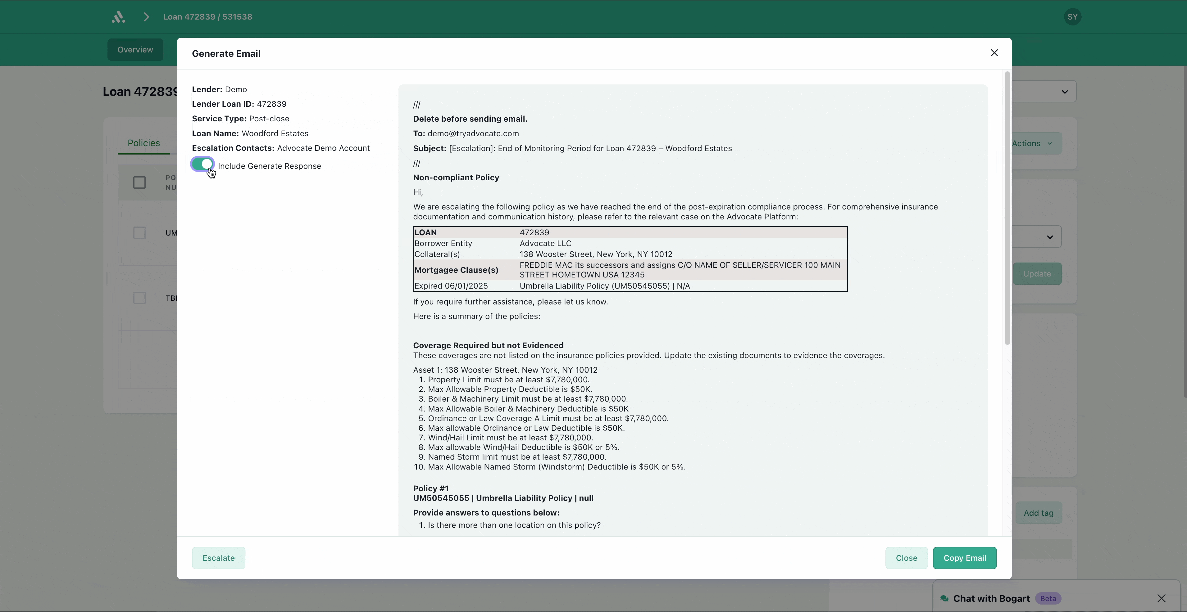 ๐น Escalation Email Update: The "Non-compliant Policy" escalation email now includes Generate Response feedback.