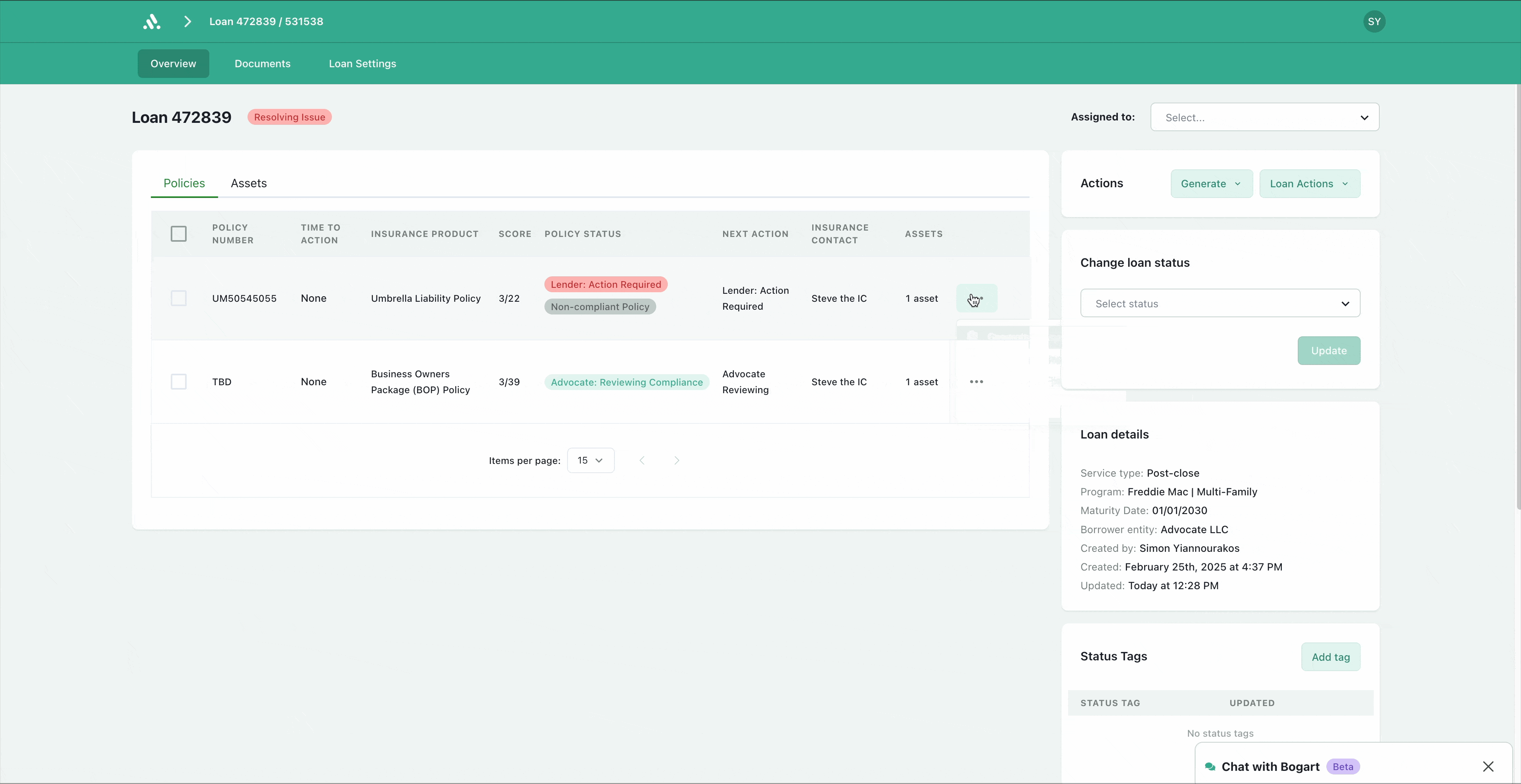 Updated Policy Settings โ When a newly onboarded Policy is linked to a Loan transitioning into Resolving Issue, additional Policy Settings fields will appear, and an indicator will notify users of this update.