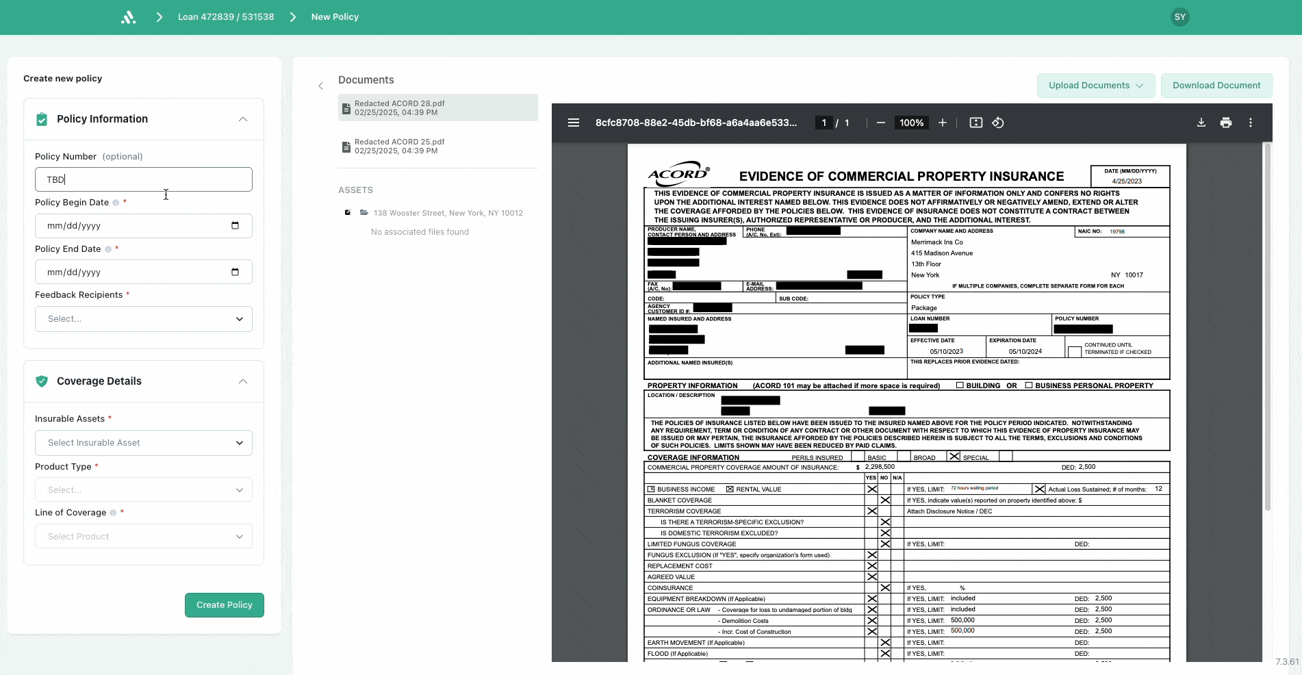 Designed for policies tied to loans marked as "Future Renewals", this process simplifies policy creation conducted for tracking purposes.