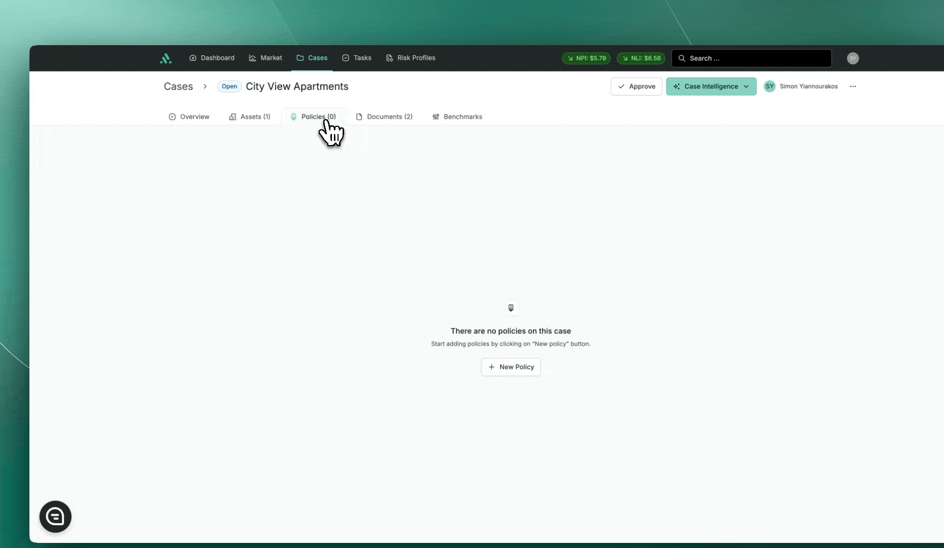 From the Case Overview Page, go to the Policies tab.