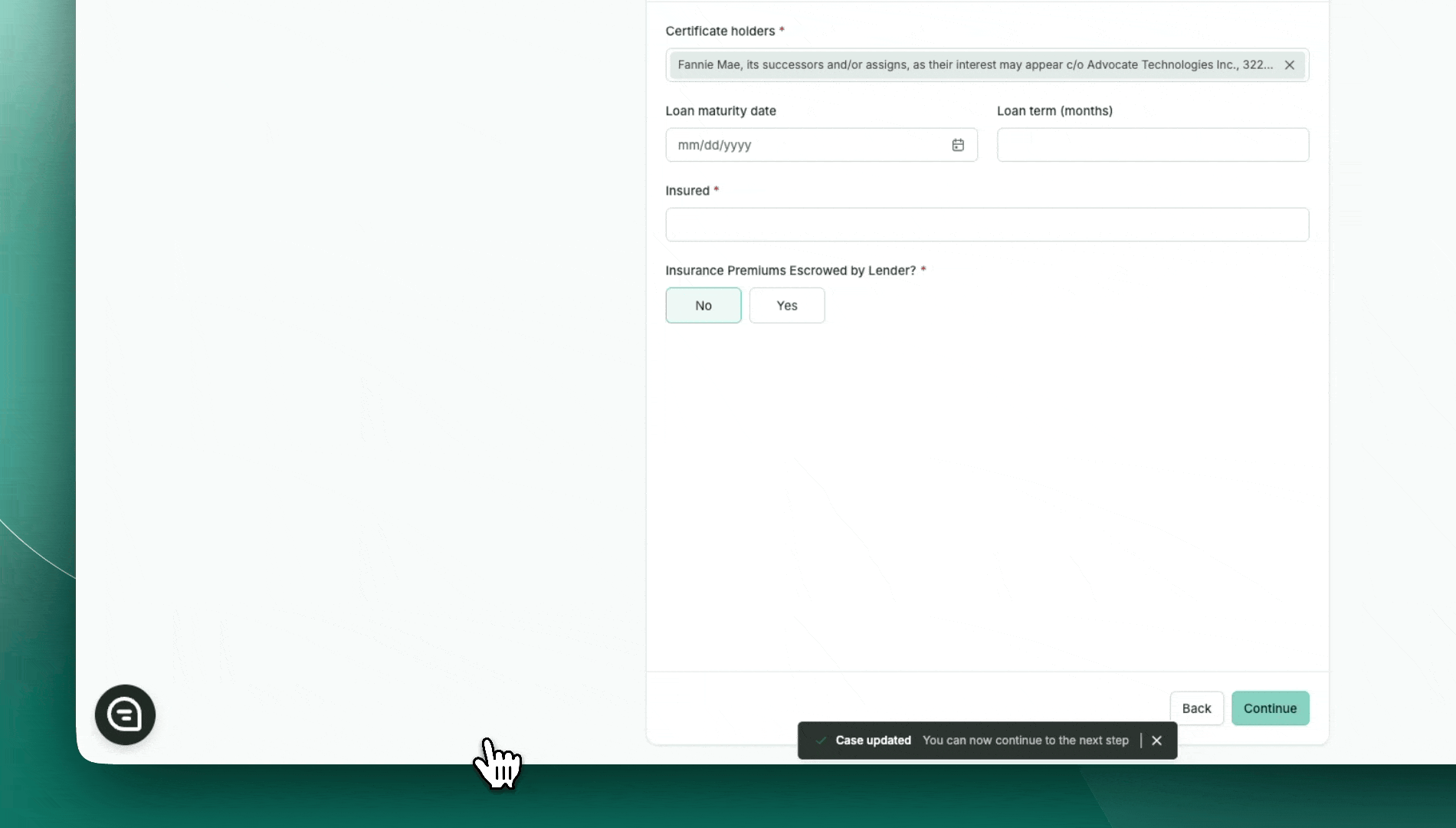 Follow this step-by-step guide to create a new loan case for servicing within the Advocate platform.