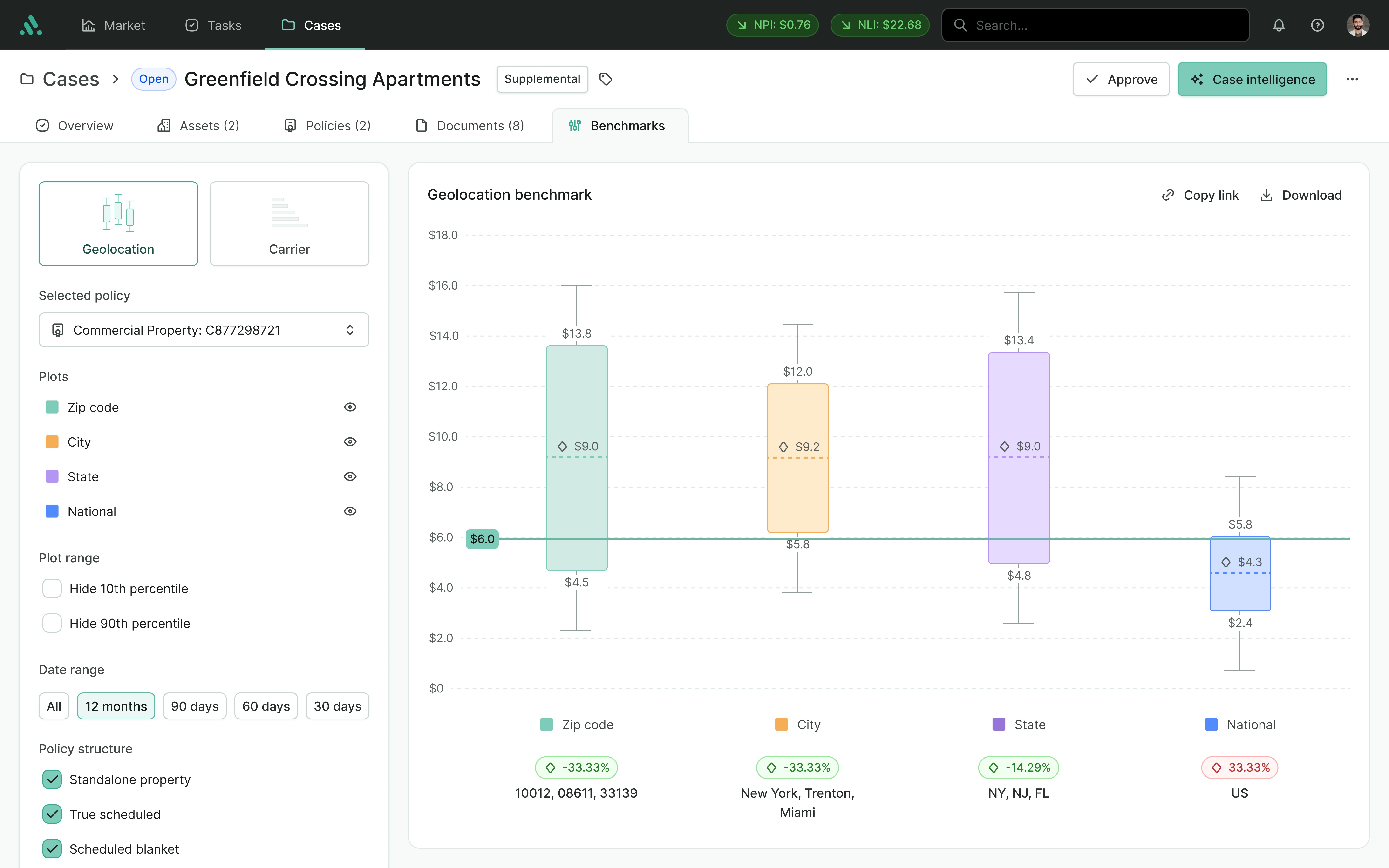 Monitor pricing and coverage trends across the broader insurance market.Market Volatility Visualization