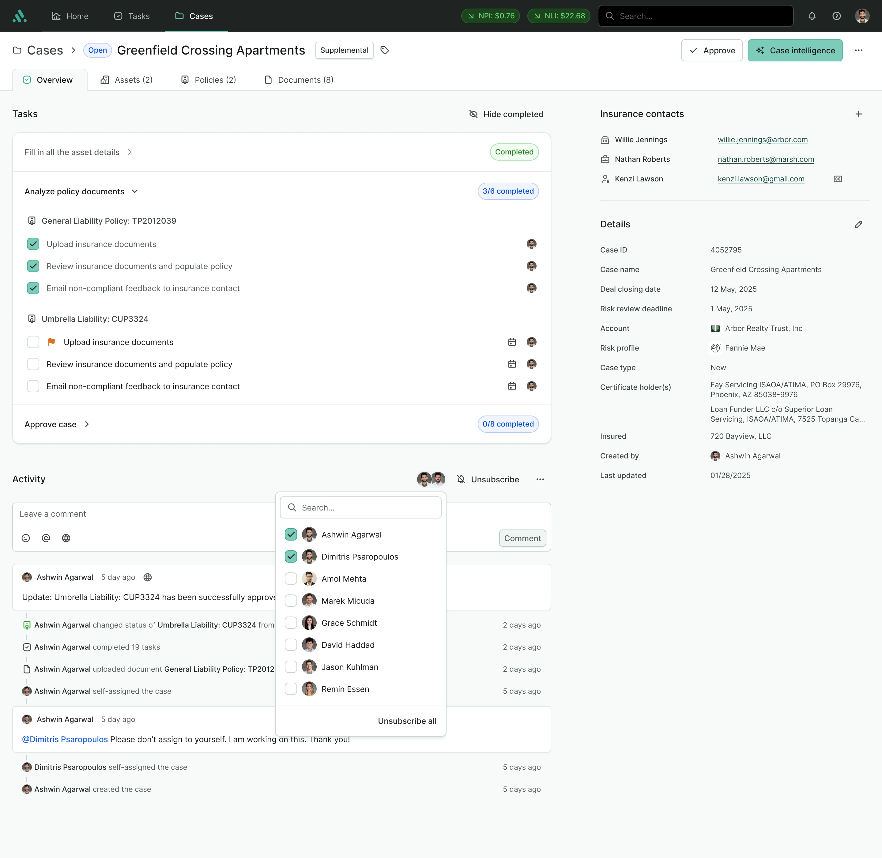 Locate any case, policy, or task instantly with platform-wide, context-aware search functionality.In-App Collaboration Tools