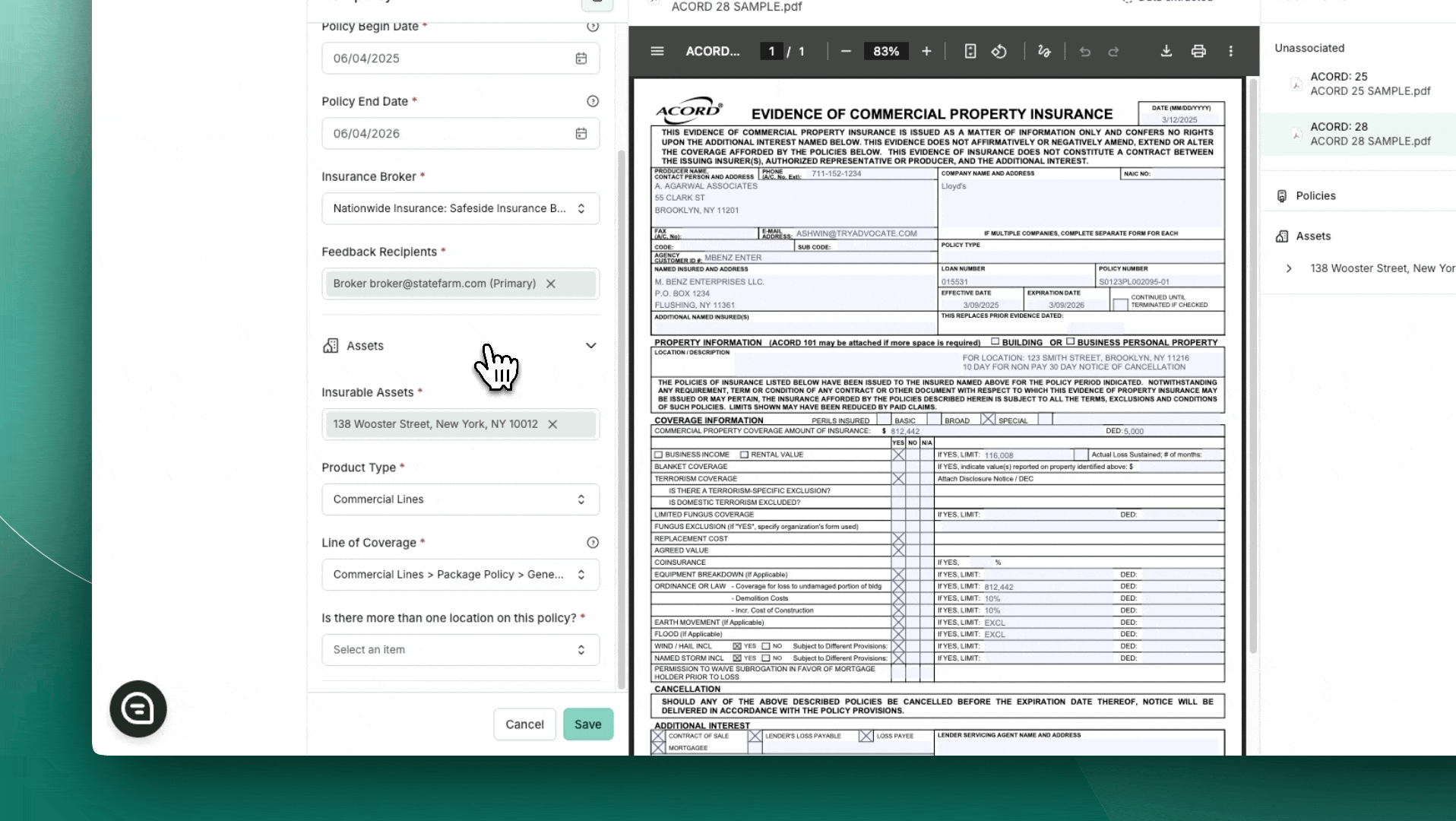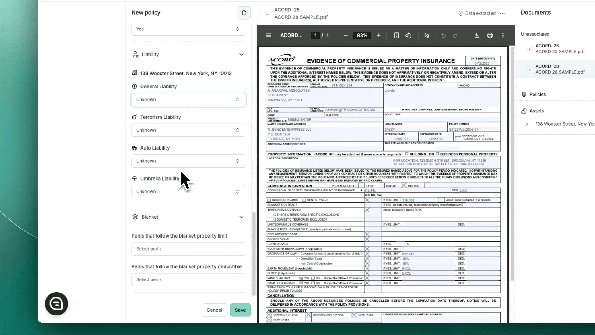 Add all necessary insurance documentation (e.g., ACORD forms, certificates).