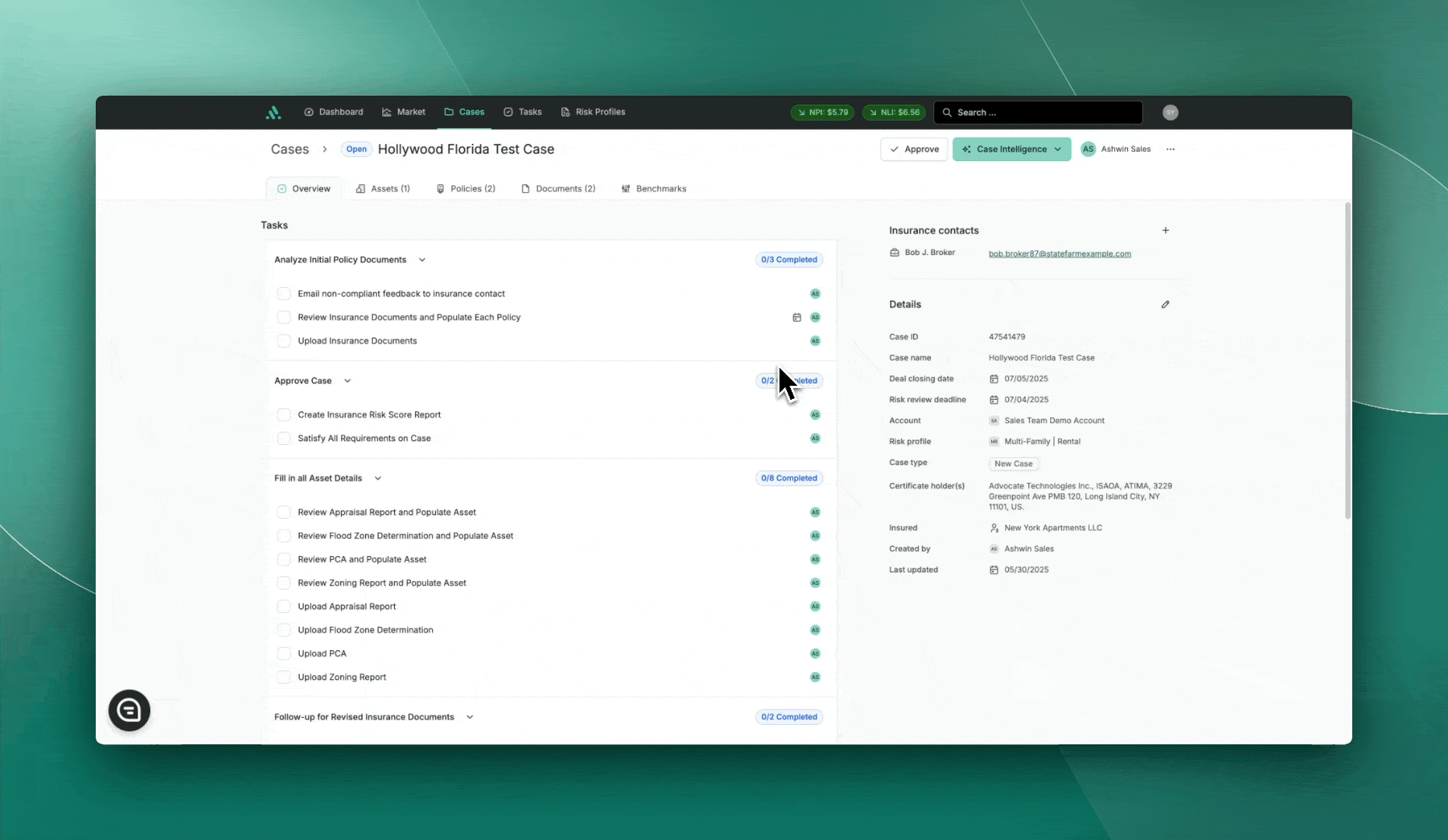 The Insurance Risk Score report delivers a comprehensive snapshot of a case's compliance progress, displaying which requirements and rules have been met. Frequently used during final approval, this report can also be downloaded at any stage of the loan process, giving users real-time insight into any outstanding compliance items of Active Policies.