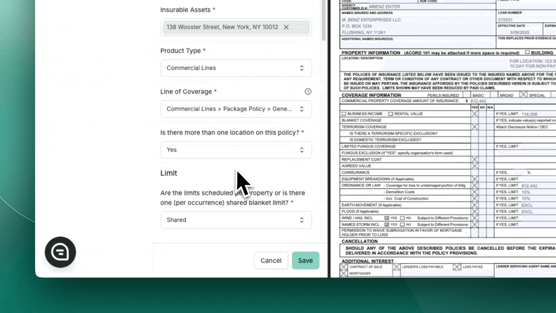 Case and Asset Information: Using the case’s details and asset type, the platform tailors required coverages to suit the specific context of the loan.