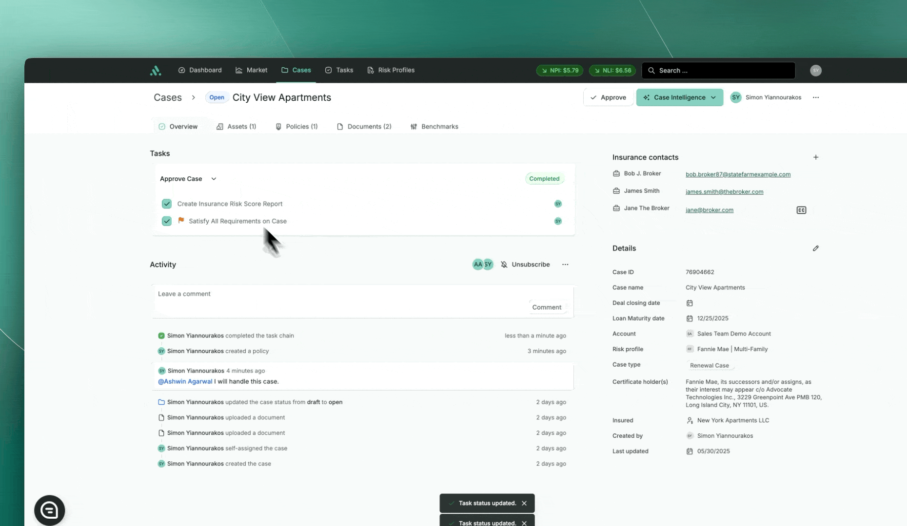 Policy Approval: All policies associated with the loan must be in Approved status before the case can be approved.