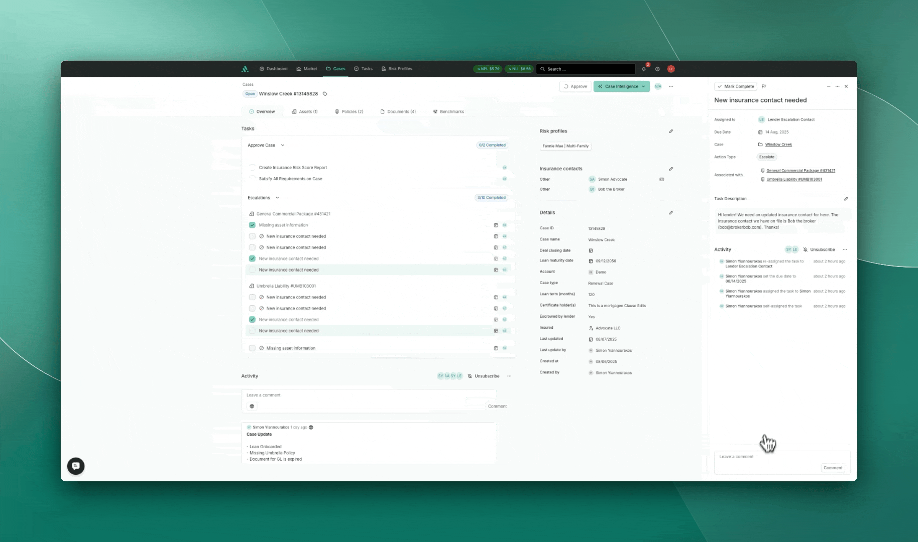 An escalation is a situation that requires your attention or input in order to move forward with a property’s insurance review or compliance process. Escalations may include missing documents, updated contact info, waiver decisions, or borrower involvement.